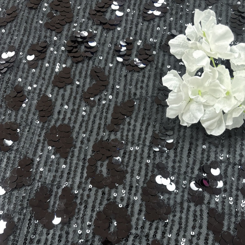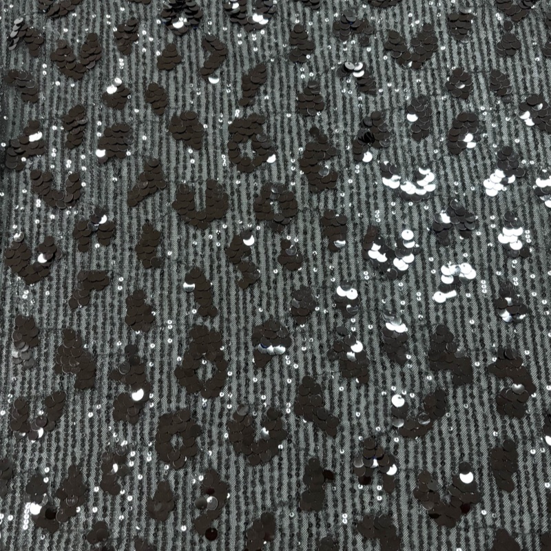 Because the mesh base allows light to pass through, the sequin leopard pattern appears to float above the fabric surface, giving garments an elegant yet dramatic effect.