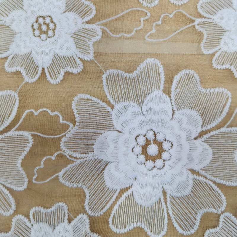 This embroidery technique gives the lace a refined yet handcrafted appearance.