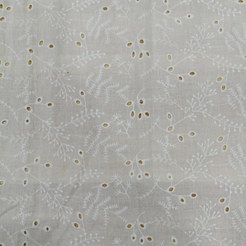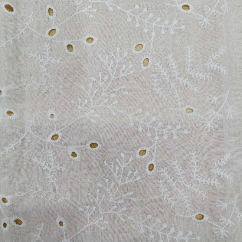 The 100% Cotton Plant Embroidery Lace Fabric is an elegant openwork embroidery textile that combines natural cotton comfort with refined botanical design. Crafted using delicate embroidery techniques on a lightweight cotton base, this fabric delivers a breathable structure and a soft, natural appearance that is highly valued in modern fashion collections.